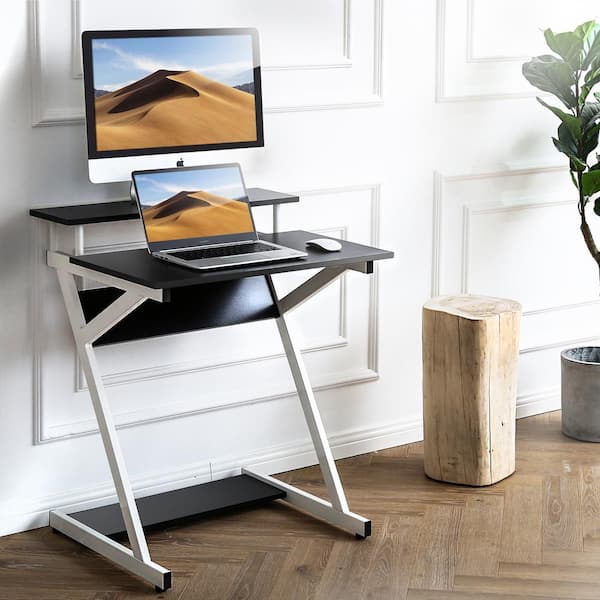Compact Modern Z-Shaped Computer Desk with Monitor Shelf for Small Spaces