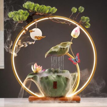 Lotus Harmony Ceramic Water Fountain with LED Light – Indoor Feng Shui Decor