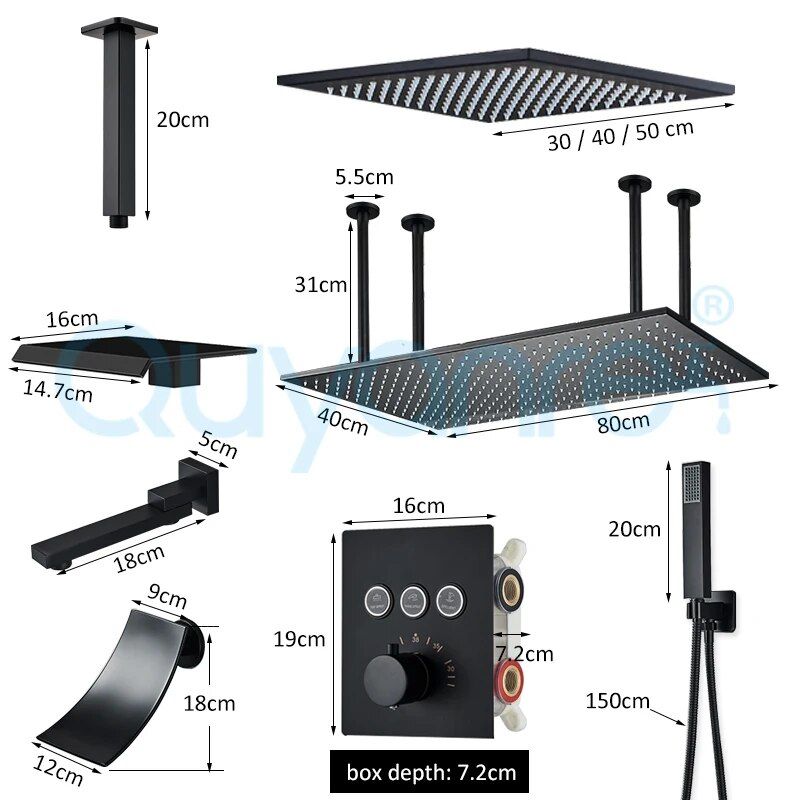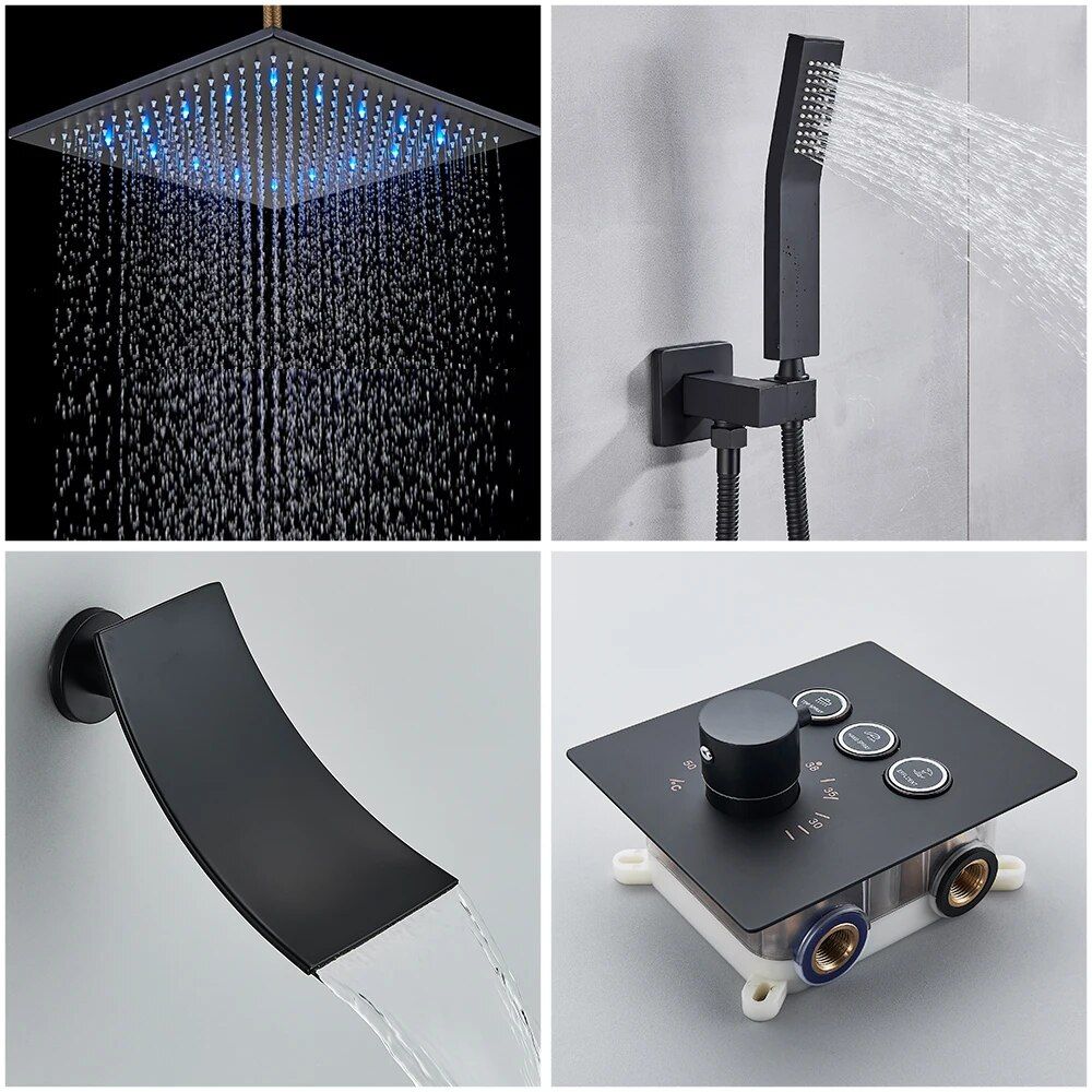 Experience the epitome of indulgence with our Luxury LED Rainfall & Waterfall Shower System. Designed for the contemporary home, this exquisite shower system blends functionality with style, offering a spa-like experience every time you step in. With its sleek black finish and innovative features, it’s more than just a shower – it’s a statement of luxury and sophistication.