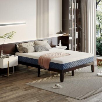 Queen Size Wooden Bed Frame with 10″ Multi-Layer Memory Foam Mattress – Espresso Finish