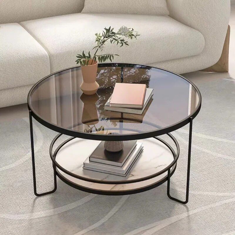 Elevate your living space with our Elegant Glass Round Coffee Table. This exquisite piece blends the charm of antique design with the simplicity of modern aesthetics, making it a perfect addition to any living room, bedroom, or office space. Its round shape and glass surface add a touch of sophistication and openness to your home, creating an inviting atmosphere for you and your guests.