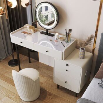 Modern Minimalist Vanity Table with Mirror & Stool – Free Shipping
