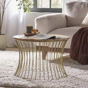 Boho Glam Gold Iron and Wood Round Coffee Table