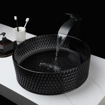 Crystal Glass Vessel Sink and Faucet Combo – Contemporary Black Bathroom Countertop Basin