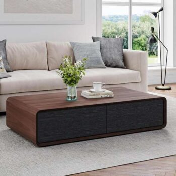 Walnut and Oak Wood Coffee Table with Hidden Storage and Modern Design
