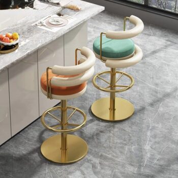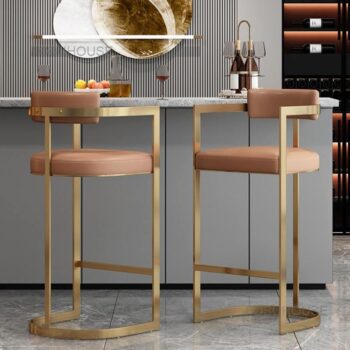 Modern Minimalist Stainless Steel Bar Stool with Handrails – Rotatable, High Bench Design