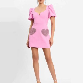 Pink Sequin Heart Puff Sleeve Mini Dress