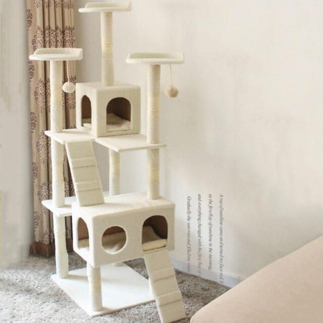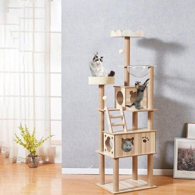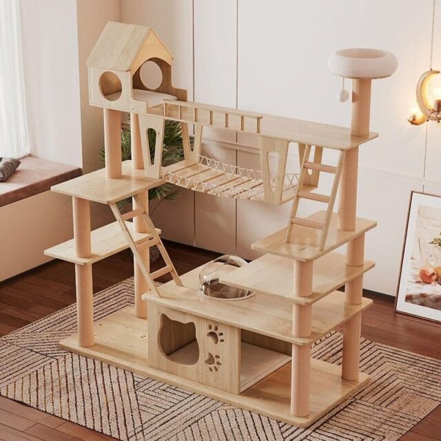 Introducing a haven for your feline friends – the Deluxe Multi-Tier Solid Wood Cat Tree. Crafted for the ultimate cat experience, this luxurious cat tree combines functionality with style, making it a perfect addition to any cat-loving household. Its elegant design and superior quality make it a must-have for every pet parent seeking to enrich their cat’s life.