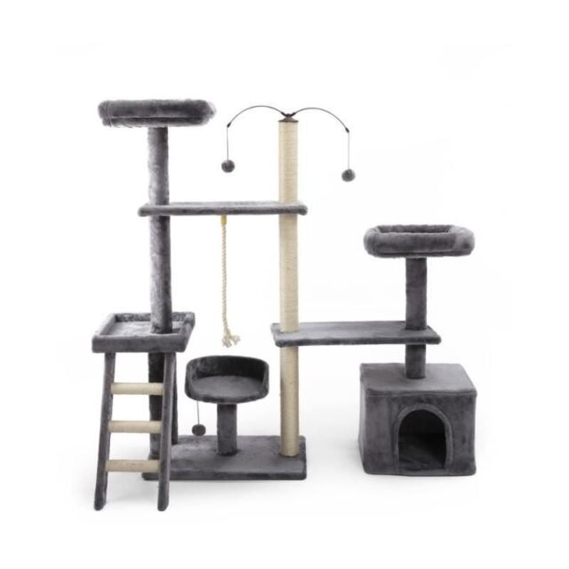This cat tree is ideal for both playful kittens and adult cats. Whether your cat enjoys climbing, scratching, playing, or simply lounging, our cat tree offers something for every mood and activity. It’s especially beneficial for indoor cats, providing them with a stimulating environment that mimics the outdoors.